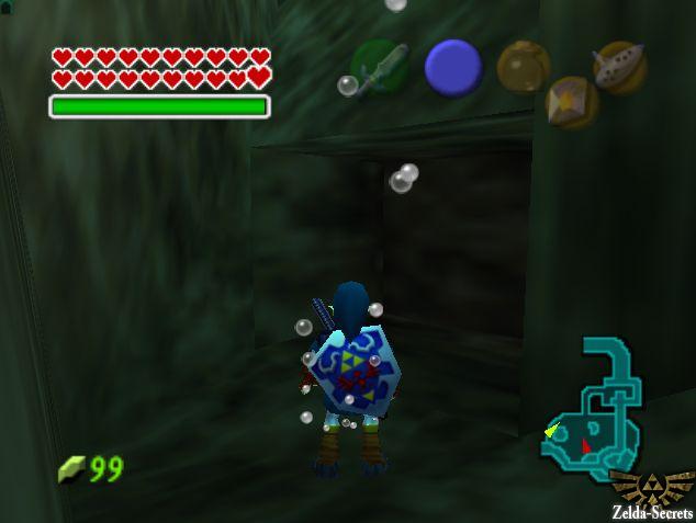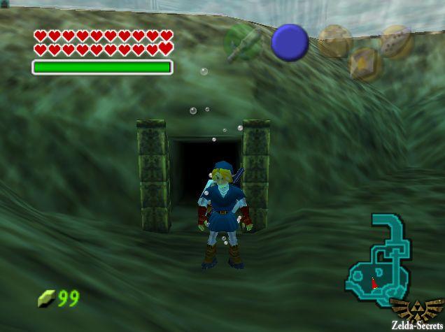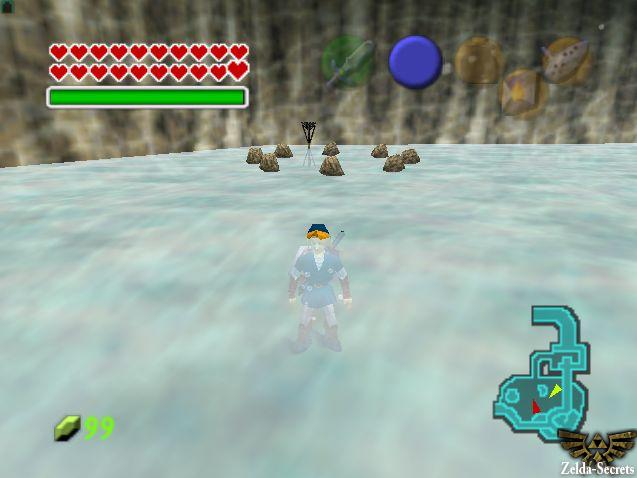 Vous êtes dans le bunker en briques jaunes là où il y a le passage qui mène au domaine zora, et que vous voyez alors qui s'offre à vous. Allez donc dedans, et mettez tout de suite vos bottes de plomb. Vous serez alors sous la glace du domaine Zora.